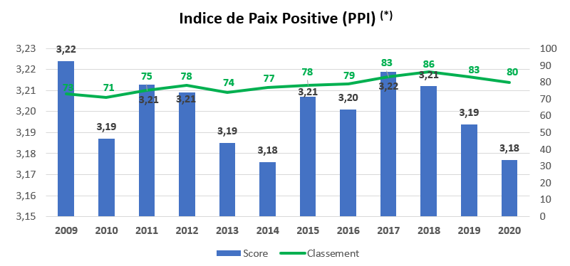 (*) Un score bas de l’indice correspond à un haut niveau de paix positive.
