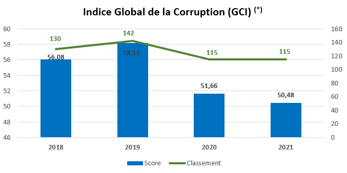 (*) Les pays sont notés sur une échelle allant de 0 à 100, où 0 représente le risque le plus faible et 100 le risque le plus élevé de corruption.