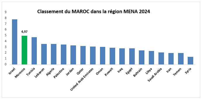(*) L'indice est établi sur une échelle de 0 à 10, score bas correspond à un faible niveau de démocrate.