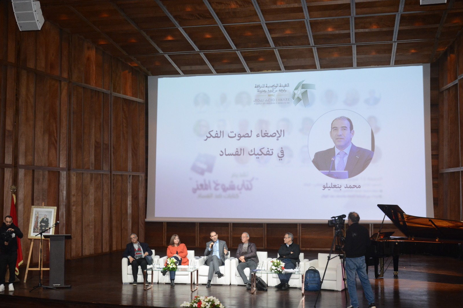 نظّمت الهيئة الوطنية للنزاهة والوقاية من الرشوة ومحاربتها يوم الجمعة 13 فبراير 2026، لقاءً ثقافياً وفكرياً، احتضنه المعهد الوطني العالي للموسيقى والفن الكوريغرافي بالرباط، بحضور نخبة من المثقفين والباحثين والمهتمين بقضايا الحكامة ومحاربة الفساد وتدبير الشأن العام، وذلك بمناسبة تقديم الكتاب الجماعي المعنون بـ "شروخ المعنى: كتابات ضد الفساد".